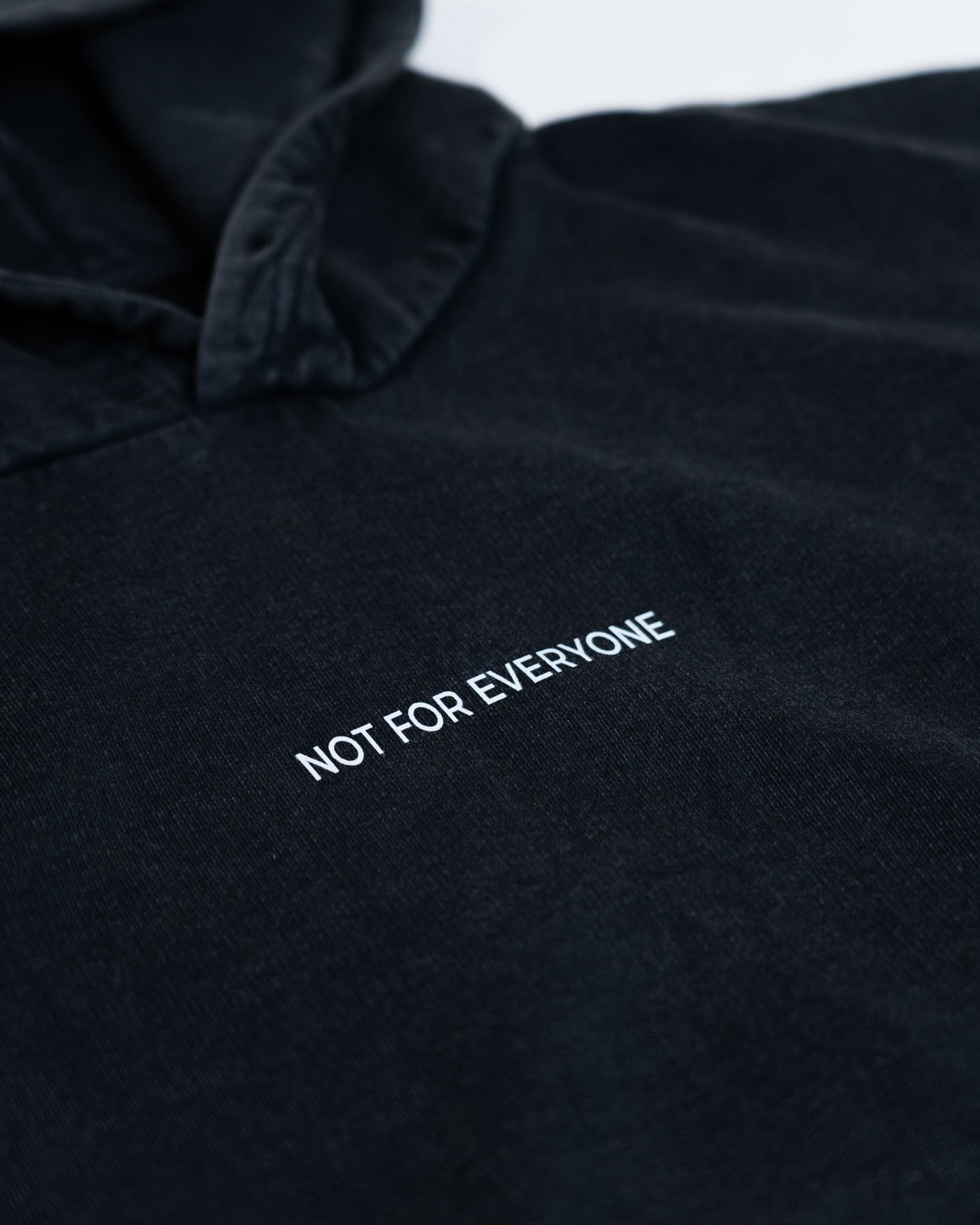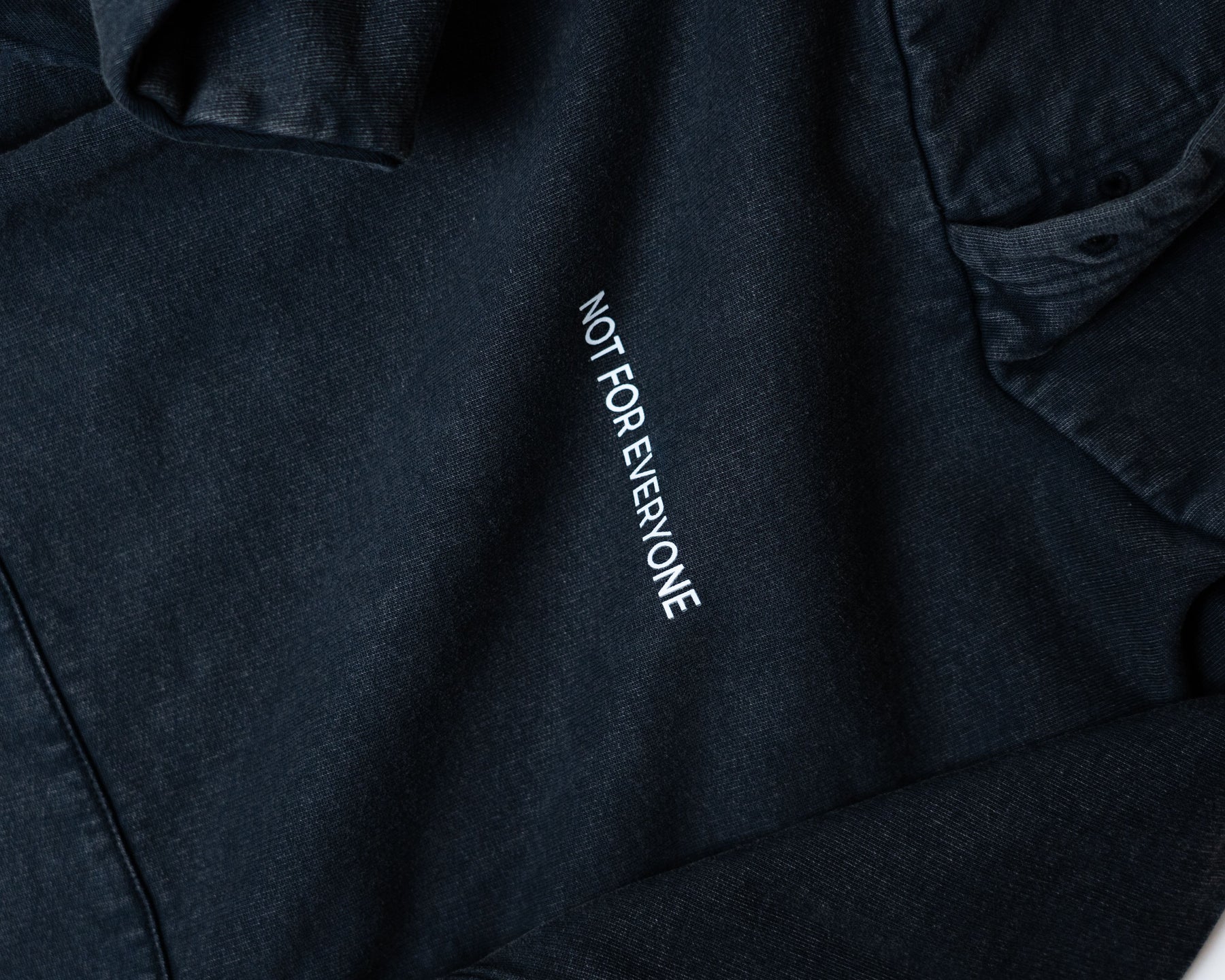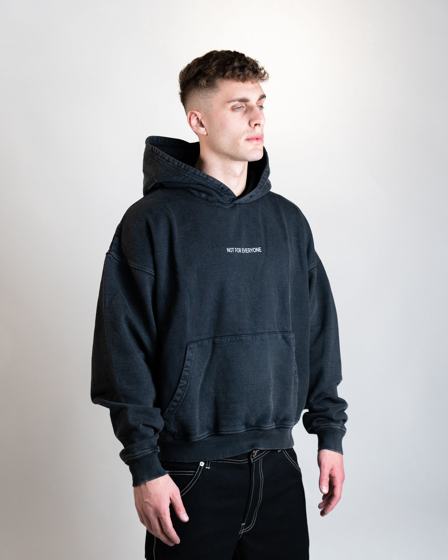 Felpa hoodie boxy fit con tasca centrale, cappuccio effetto acid wash con scritta frontale altezza petto e stampa posteriore, manica effetto tagliuzzato.