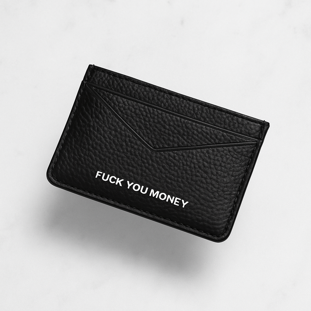 Comodo portafoglio, con due feritoie sul fronte, lo spazio superiore per soldi contanti, la scritta ''FUCK YOU MONEY'' incisa e altre quattro feritoie sul retroIl portafoglio è in vera pelle al 100%